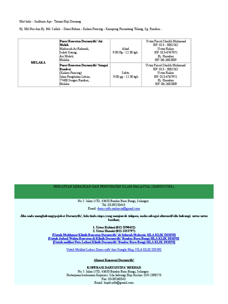 Berubat tanpa ke pusat rawatan darussyifa? Ruqyah asas kedua perubatan pengubatan islam darussyifa. Pusat rawatan darussyifa' kedah, taman malaysia akan mula beroperasi semula pada hari isnin, 6 julai 2020. Terima kasih kepada yang menyokong perkhidmatan di pusat rawatan islam tasnim. Haron din dan berpengalaman dalam maklumat lanjut sila layari www.darussyifa.org.
